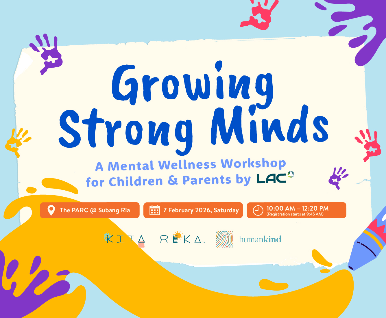 Growing Strong Minds,' an interactive workshop by LAC designed for parents and children! Register NOW for early bird price!