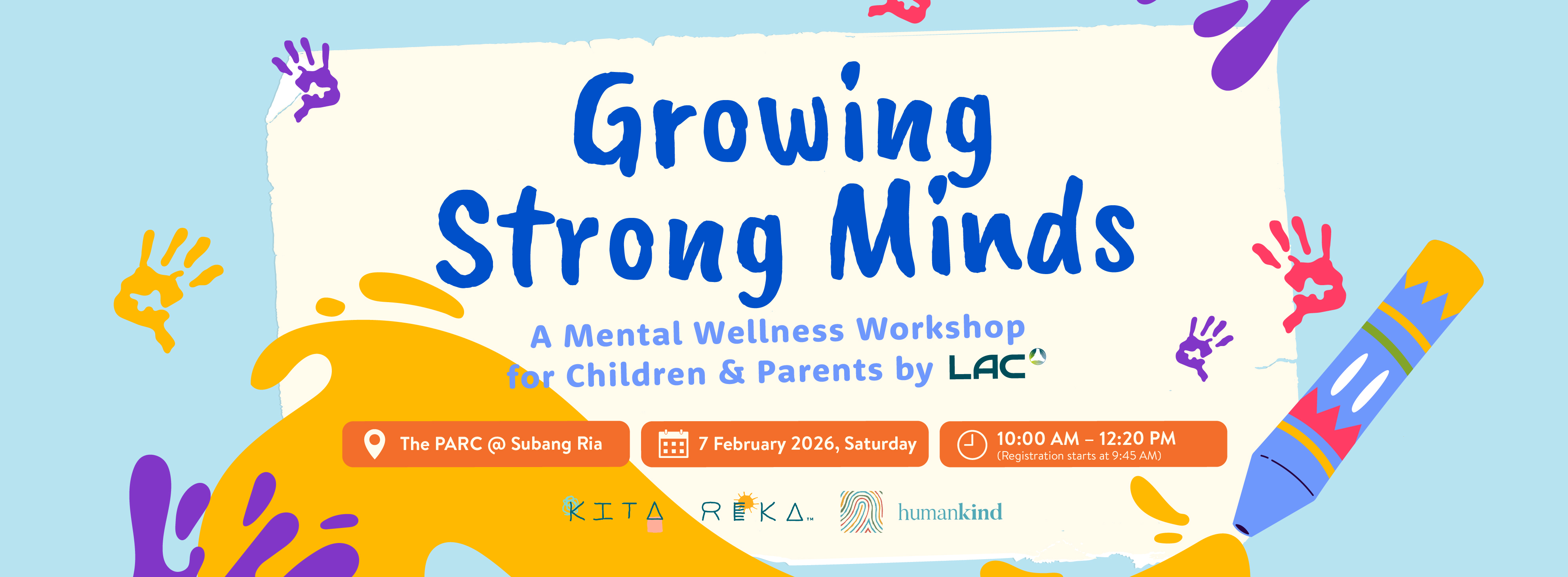 Growing Strong Minds,' an interactive workshop by LAC designed for parents and children! Register NOW for early bird price!